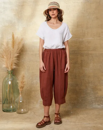 Erus Caramel Pantacourt aus 100% Leinen