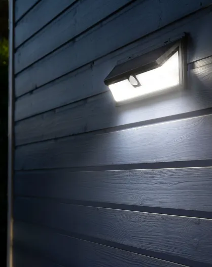 Sehr heller Solar-Wandstrahler mit Präsenzmelder 300 Lumen schwarz - 29,8 x 48,7 x 10,5 cm