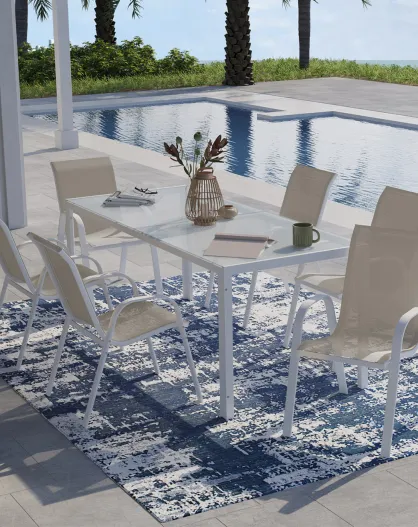 6 stapelbare Gartenstühle aus Textil in Weiß/Beige - 51,5x68x84 cm