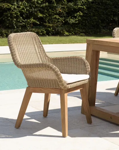 2 Gartenstühle aus synthetischem Rattan und Holzkissen - 60x65x84 cm