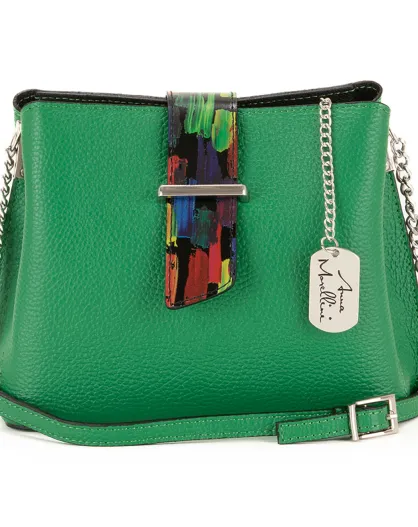 Anna Morellini grüne Schultertasche aus Leder - 22x17x10 cm