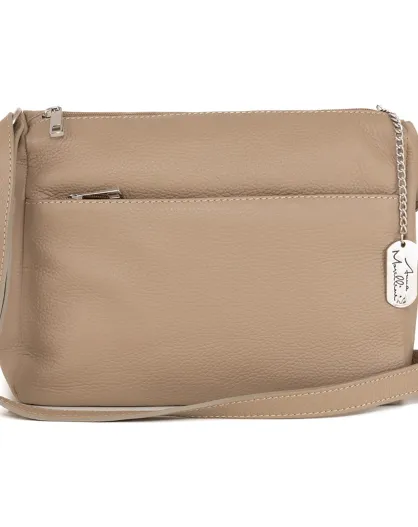 Orlanda Schultertasche aus taupefarbenem Leder - 29x23x12 cm