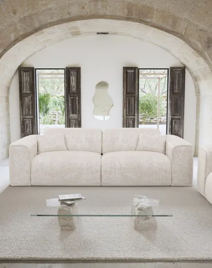 Express Nova Sofabett, geflochtener Samt, 95 x 214 x 73 cm, cremefarben