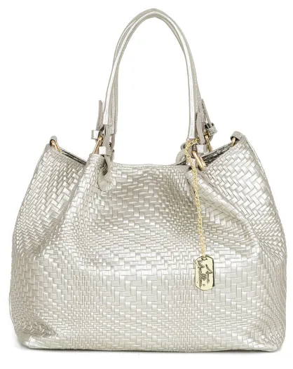 Schultertasche Eloisa aus Platinleder - 38x28x16 cm