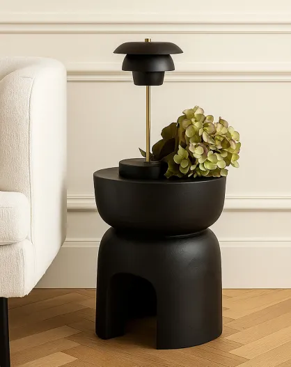 Beistellschrank aus Paulownienholz, 32 x 32 x 40 cm, Schwarz