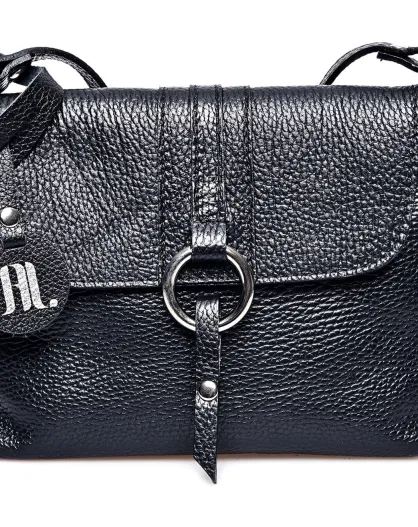 Schwarze Schultertasche aus Leder - 17x24x7 cm