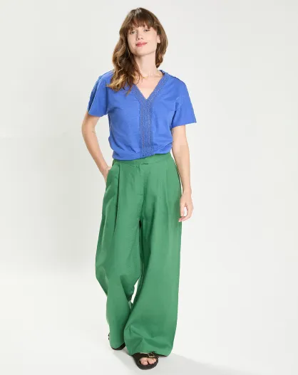 Phedra-grüne Weitbeinhose aus Leinen und Baumwolle