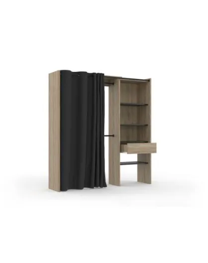 Ausziehbare Ankleidesäule aus Holz und schwarzer Gardinenschrank, 120-170x180 cm