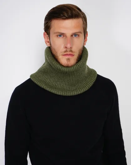 Khakifarbenes Halsband aus gerippter Kaschmirmischung