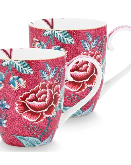 Pink Flower Festival XL Maxi-Tassen aus Porzellan, 9,7 x 11,9 x 22,2 cm, 2 Stück