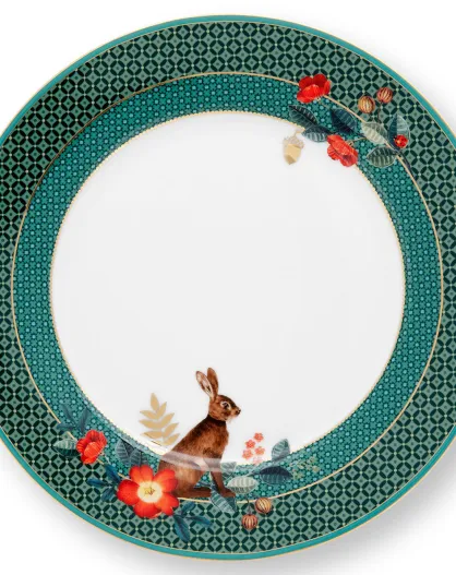 Dessertteller „Winter Wonderland Rabbit“ aus grünem Porzellan, Durchmesser 21 cm, 6 Stück