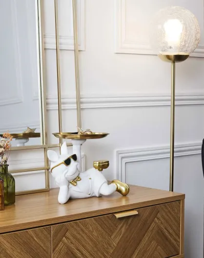 Bulldoggenstatue - Sortiert in Weiß/Gold - 27x17x18,2 cm