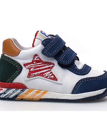 Neue Ferdi Ledersneaker in Grau/Blau/Rot