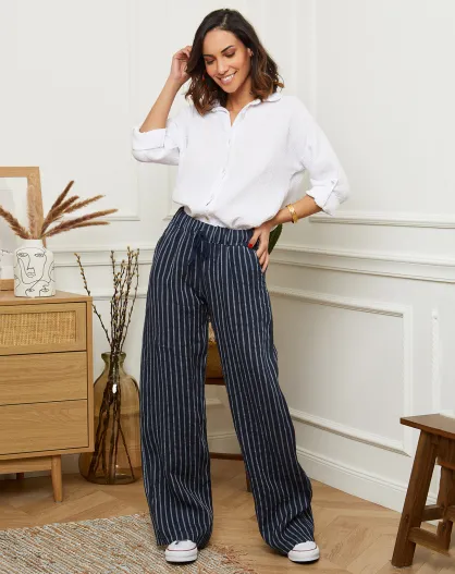 Marineblaue Hose Blia aus 100% Leinen