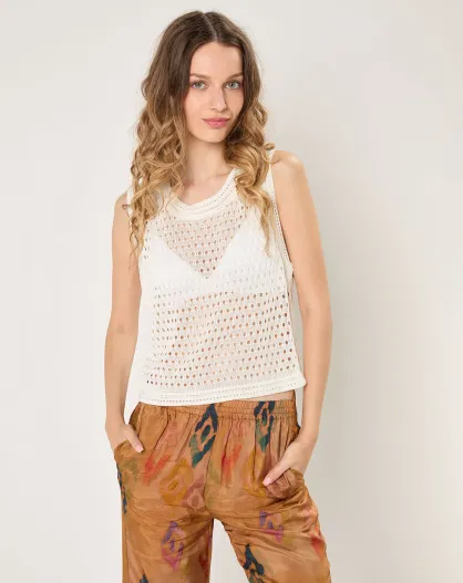 Ecrufarbener ärmelloser Pullover Julie