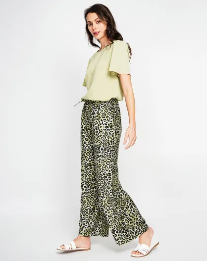 Hellkhakifarbene Hose Juliette aus Leinenmischung