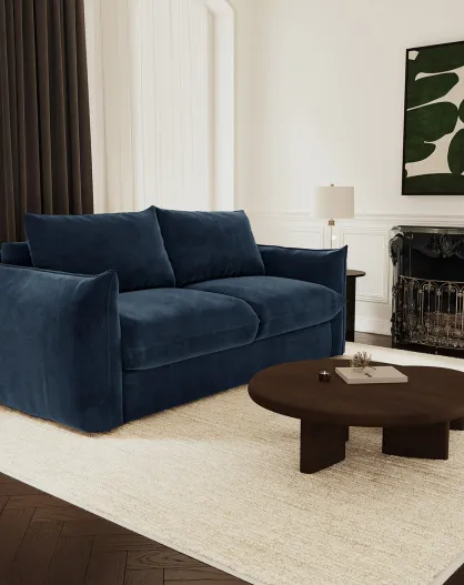 Bettsofa, 140 cm dick, 17 cm, Coco Velours, mitternachtsblauer Samt — 208 x 105 x 90 cm