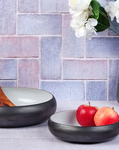2 Gourmet-Obstkörbe aus Steinzeug Granit/schwarzer Onyx - 36,5 x 36,5 x 15,1 cm