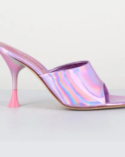 Rosafarbene Asia Leder-Pantolette mit 9,5 cm Absatz
