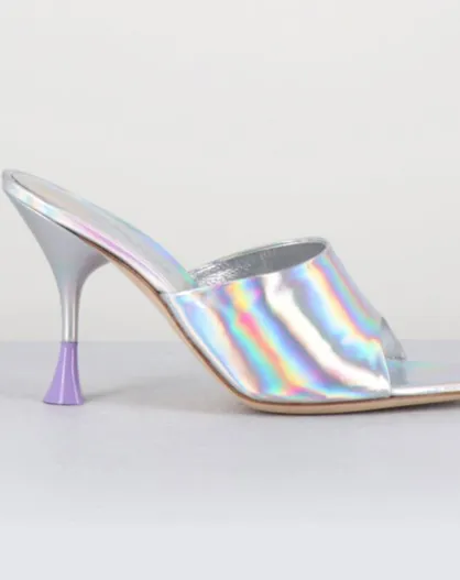 Pantolette Asia aus silberfarbenem Leder — 9,5 cm Absatz