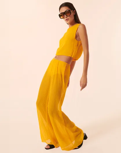 Nicks apricotfarbene Hose aus Leinen und Seide