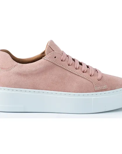 Rosafarbene klassische Ledersneaker mit Schnürung