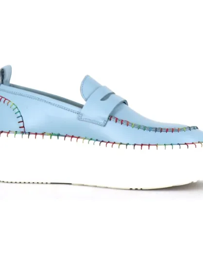 Blaue Leder-Mokassins mit 5 cm Absatz