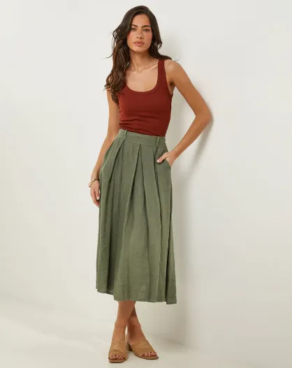 Anna khakigrüner Rock aus 100% Leinen