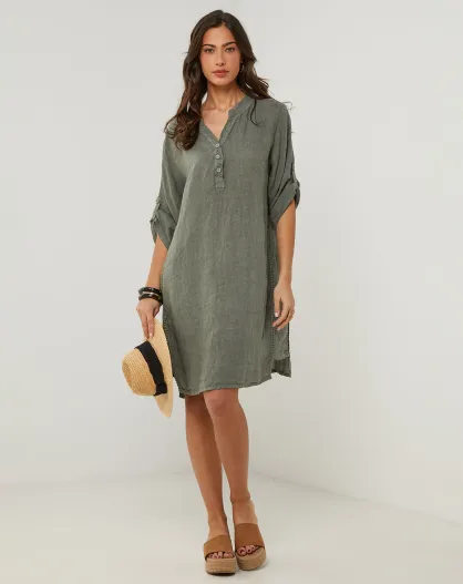 Khakigrünes Capucine-Kleid aus 100% Leinen