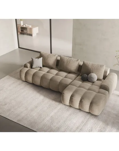 Linzer Ecksofa für 3 Personen, hellbeige, aus Samt, rechts, mit Kofferraum, 275 x 142 x 84 cm