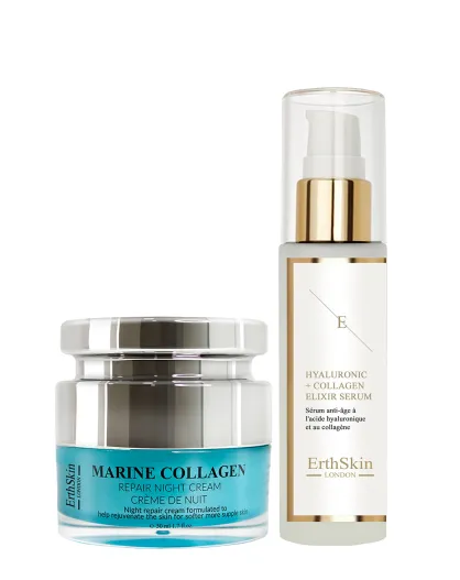 Hyaluronsäure- und Kollagen-Serum + Marine Collagen Night Repair Cream - 2 Stück