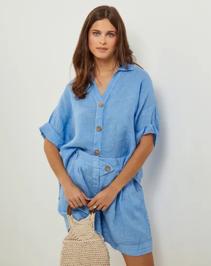 Indigo Marshmallow Hemd aus 100% Leinen