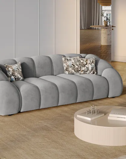 Lyna 4-Sitzer-Sofa aus grauem Samt, 245 x 114 x 72 cm