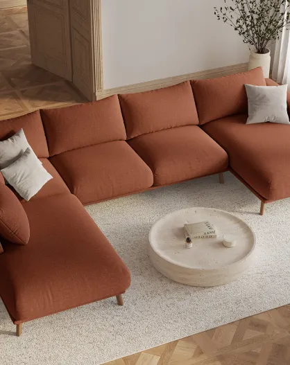 Margot Panoramasofa, links, 6-Sitzer, Backstein, 365 x 235 x 75 cm
