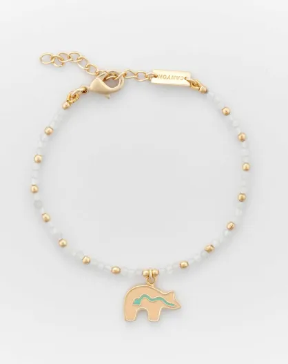 Goldenes Messingarmband Lachsbär, rosa Quarz