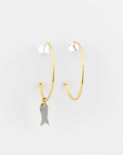 Ohrringe aus Silber und Messing Graue Fischreifenohrringe