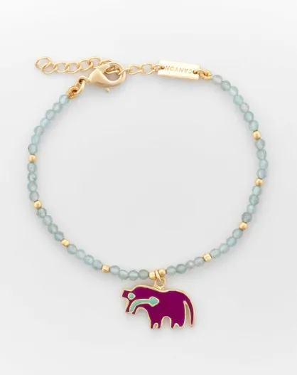 Goldenes Messingarmband Pferd Pflaume Apatit Blau