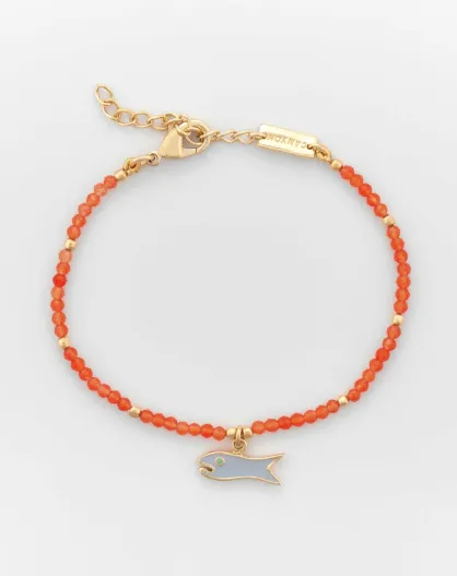 Goldenes Messingarmband Fischgrau Orange getöntes Glas