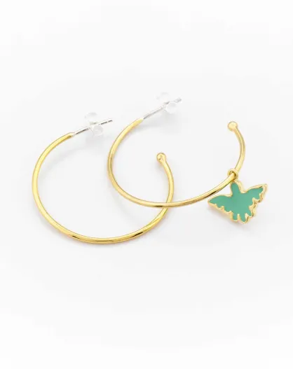 Ohrringe aus Silber und Messing Creolen mit grünem Adler