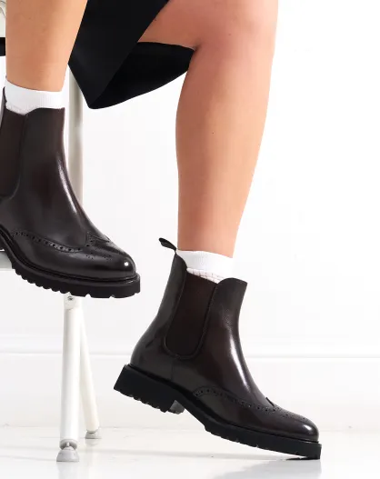 Dunkelbraune Chelsea-Stiefel mit floraler Spitze