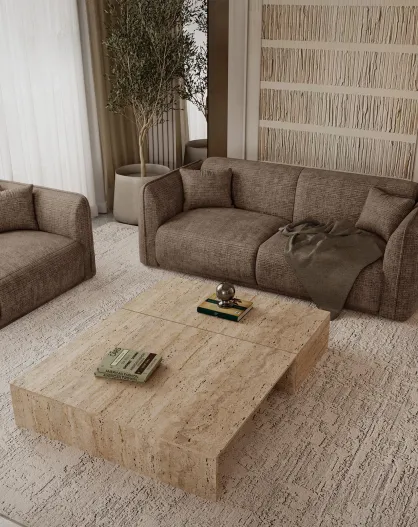 Oslo 3-Sitzer-Sofa aus taupefarbenem, geprägtem Samt - 206 x 90 x 72,5 cm