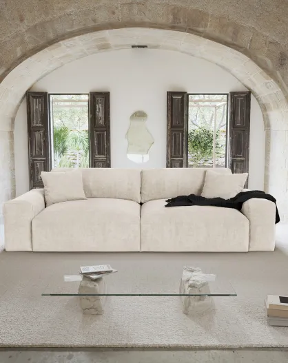 Joy 3-Sitzer-Sofa cremefarbener Samt - 220x120x75 cm