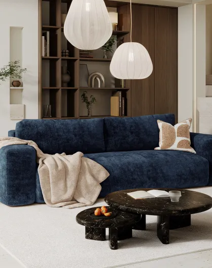Ausziehbares Sofa mit Rüssel aus Nussbaumholz Kay Velours Elefant Mitternachtsblau - 260x100x83 cm