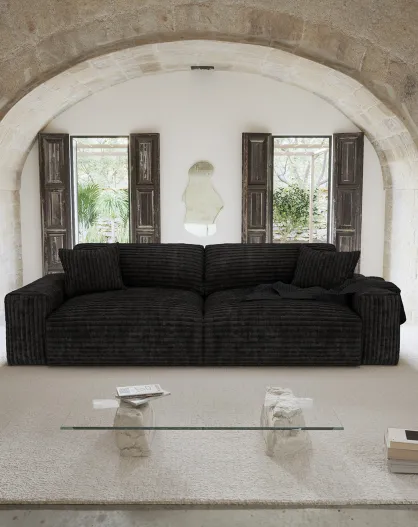 Joy 4-Sitzer-Sofa XXL aus Kord schwarz - 240x120x75 cm