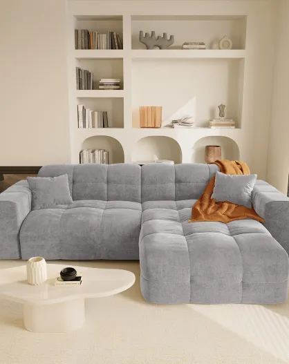 Matis rechtwinkliges Sofa hellgrauer Samt - 230x155x85 cm