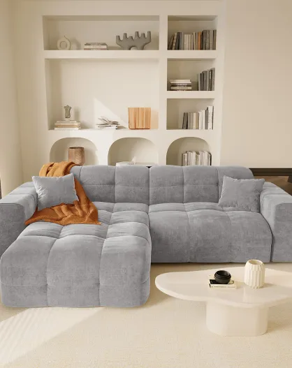 Linkes Ecksofa Matis Velours hellgrau - 230x155x85 cm