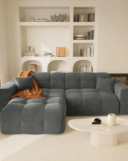 Linkes Ecksofa Matis Velvet Graphitgrau - 230x155x85 cm