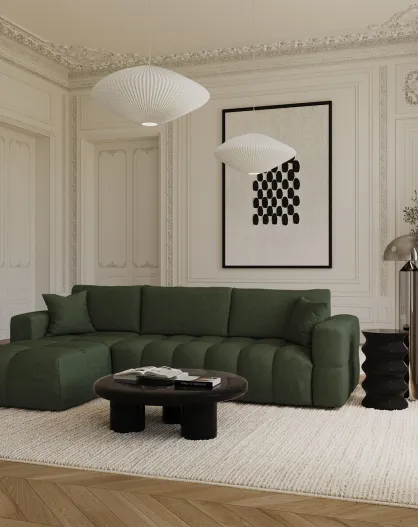 Linkes Ecksofa, umwandelbar, Dunlopillo-Matratze, 140 cm, Rafael, olivgrün, Webstoff, 286 x 165 x 80 cm