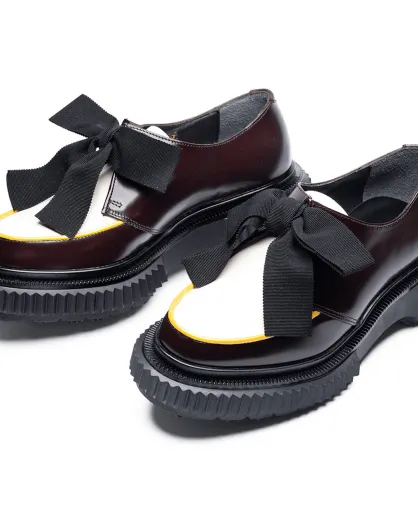 Derbys aus Kalbsleder in Bordeaux/Elfenbein/Gelb