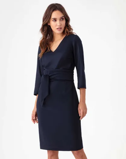 Rachel marineblaues Kleid mit Gürtel